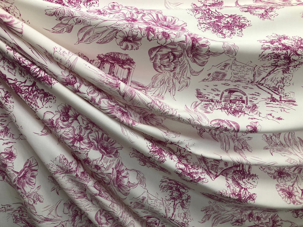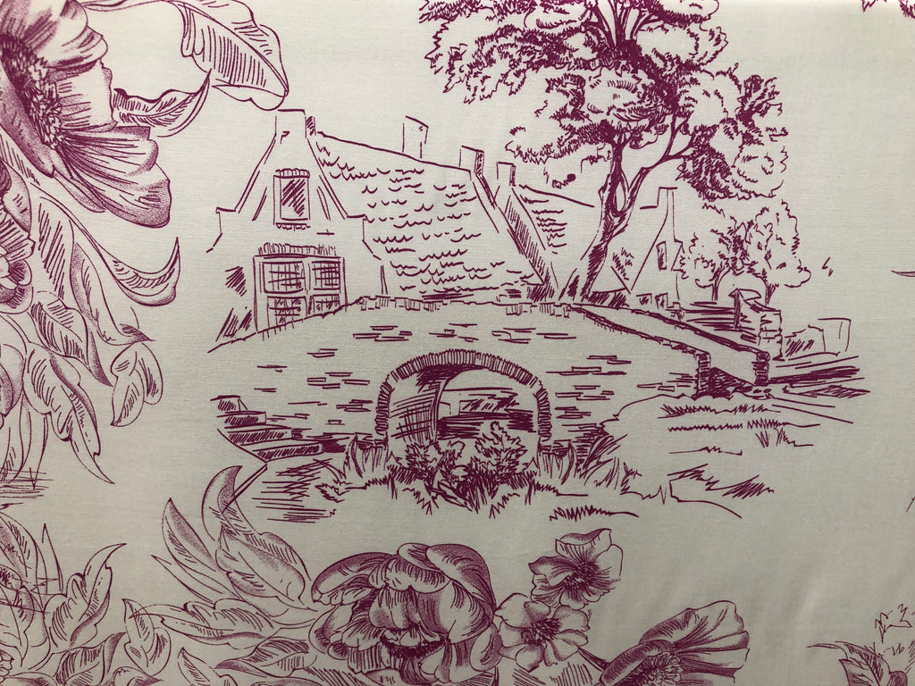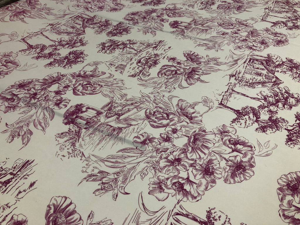 Countryside Fuschia Print on White Viscose