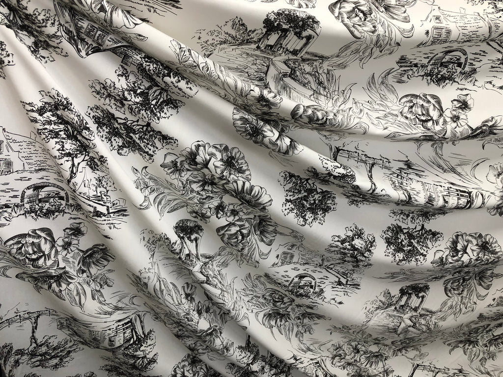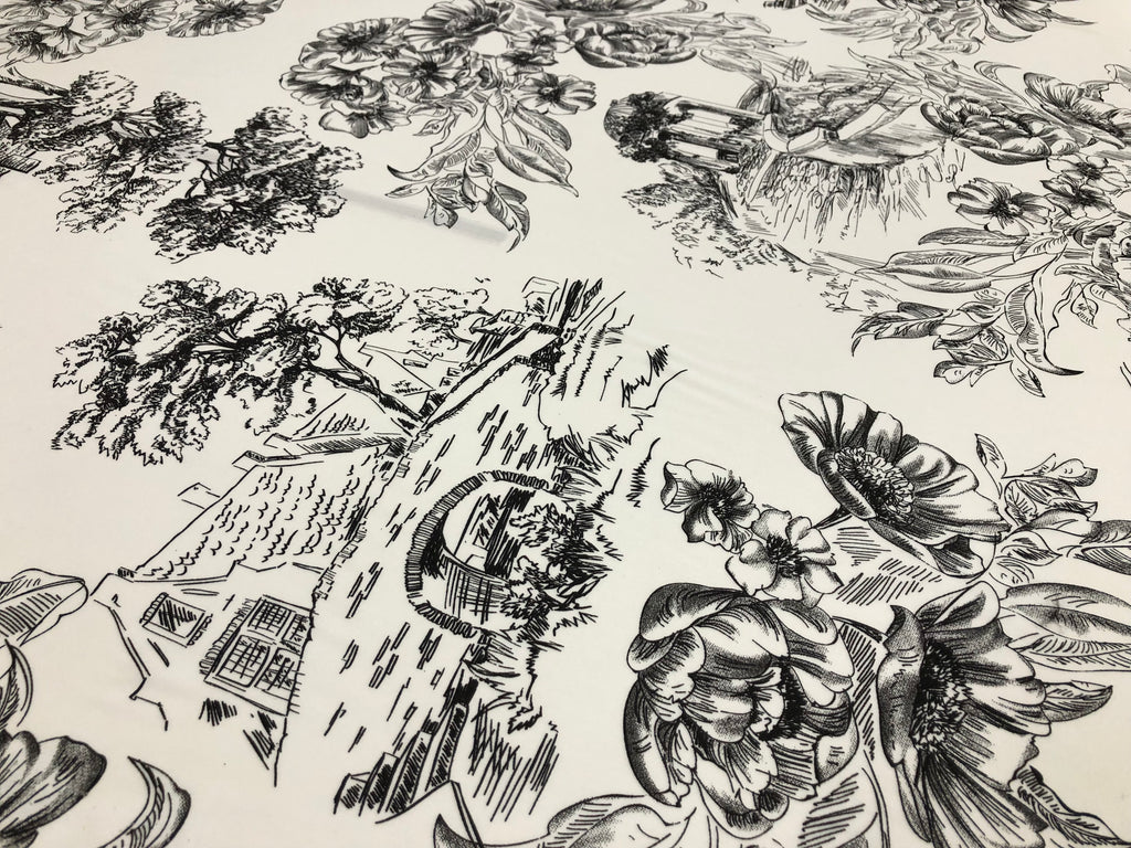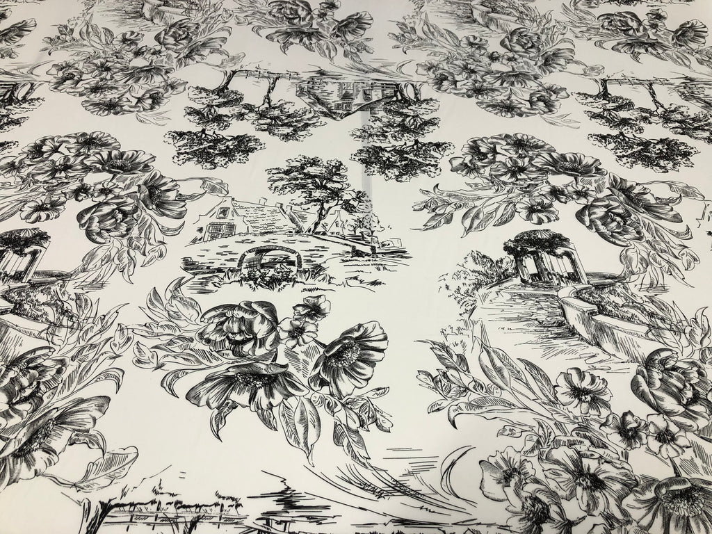 Countryside Black Print on White Viscose