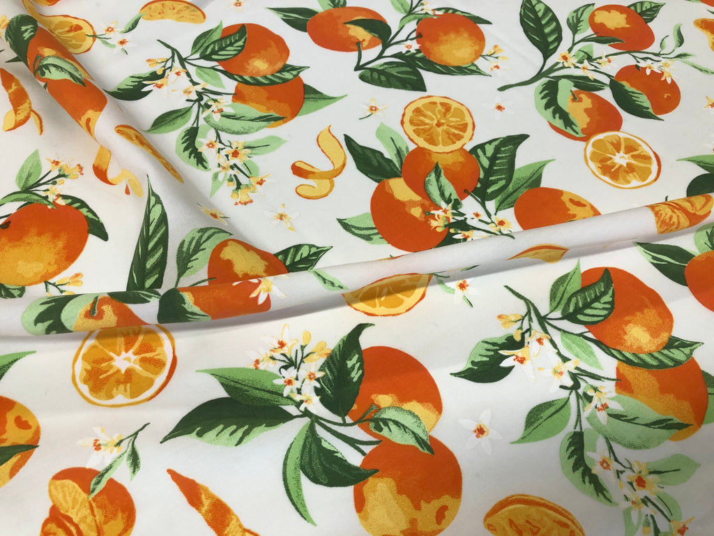 Oranges Print on White Viscose